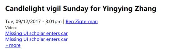(原题为《章莹颖失踪100天 美国伊利诺伊大学将为其举行守夜活动 》)