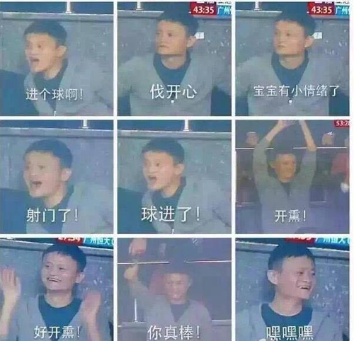 11月23日消息,2015亚冠决赛次回合赛事在广州天河体育中心展开,最终广州恒大淘宝队以两回合总比分1-0的成绩问鼎亚冠冠军。虽足球比赛扣人心弦,可身为广州恒大半个老板的马云(微博)在观看比赛时的“逗比”表情更为人们津津乐道,更有网友称其表情完全可以做一个表情包了。