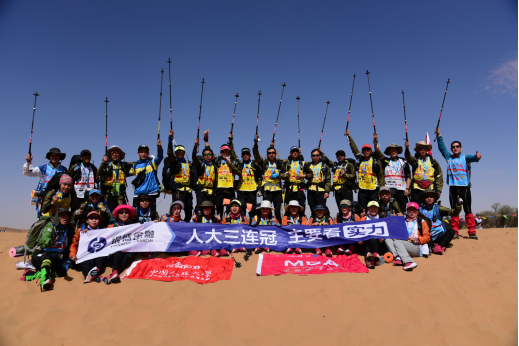2016年4月30日-5月2日,第五届“亚太地区商学院(微博)沙漠挑战赛”(简称亚沙赛)在腾格里沙漠举行。中国人民大学(微博)商学院MBA(微博)代表队,不仅勇夺团体冠军,摘取沙鸥奖,实现亚沙赛历史上的首个“三连冠”,更将男、女个人冠军收入囊中,实现大满贯的历史性突破!