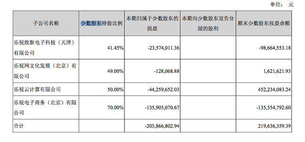 少数股东损益也主要来自于子公司亏损,“亏损大户”乐视致新在2016年前三个季度就为上市公司造出了-9866.46万的少数股东亏损。