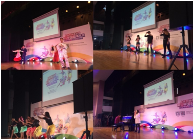 舞台上,各国学生独具本国文化特色的表演,目不暇接。中国传统悠久的太极拳、罗马尼亚铿锵的舞步、喀麦隆的热舞、墨西哥的钢琴独奏……各个代表团独具特色的表演赢得台下阵阵掌声和欢呼声。由上外MBA学生所组成的中国代表队为观众带来了古典与摩登相结合的表演与展示: 太极、流行歌曲、书法,更让在场留学生与观众赞叹。
