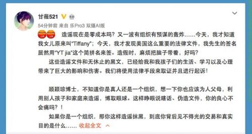 原标题:贾跃亭建信托给女儿留7500万美元?甘薇回应称造谣