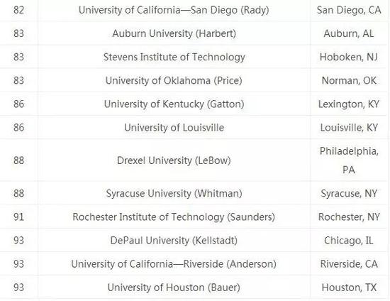 2. 下表中的学校的排名来自于N.S.News2018年商学院排名