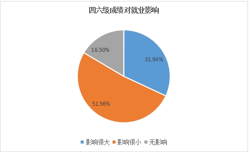除专业和学历外,英语水平作为企业衡量应届生个人能力的重要指标,对就业的影响不可小觑,报告显示,32%应届生表示四六级成绩对其就业有很大影响。
