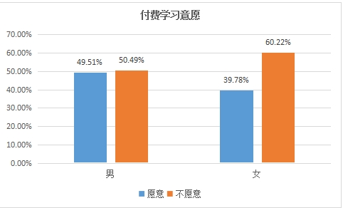 与此同时,找工作受挫后,男性和女性反应的差别也比较巨大。数据显示,找工作受挫后,女性更倾向于继续进修,以延缓就业难题;且在付费学习意愿上,高出男性应届生近10个百分点。