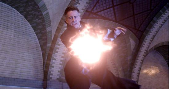 Colin Farrell's Percival Graves is seen casting quite a dramatic spell. We're going to put money on it right now: that ain't no WingardiumLeviosa.