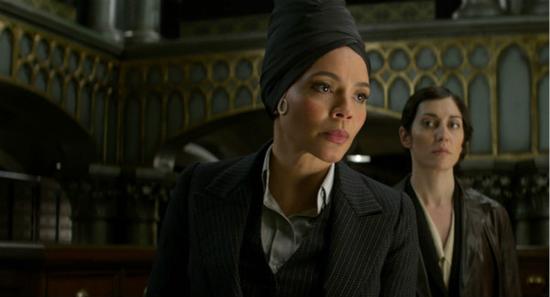 Here we have another glimpse of the US Ministry of Magic, MACUSA, with a glorious moving portrait of President Seraphina oozing with fierceness in the corner. We can also see what appears to be a gaggle of Aurors running dramatically towards (or away?) from something. It doesn't look like a relaxed Friday afternoon at the office, that's for sure. Later on, we spot Newt and Tina, looking concerned, hanging around MACUSA too. Why so serious? There's also something funny about that clock in the corner, the one with one hand that doesn't seem to point to any numbers. What do you guys think, maybe it's not meant to tell the time?