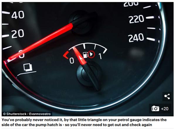 Others are game-changing in terms of their usefulness. That small triangle on your petrol gauge, for example, indicates what side of the car to access your pump from, so you'll never have to get out of a hire car to check again.