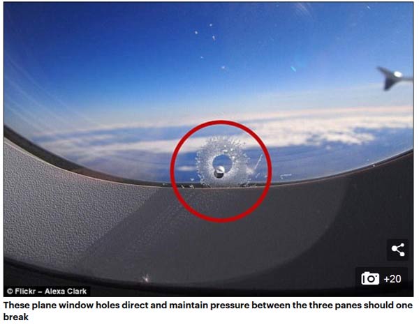 如果三个窗格中有一个发生破裂,这些飞机窗户上的小洞便可以用来控制并保持窗格间的压力。