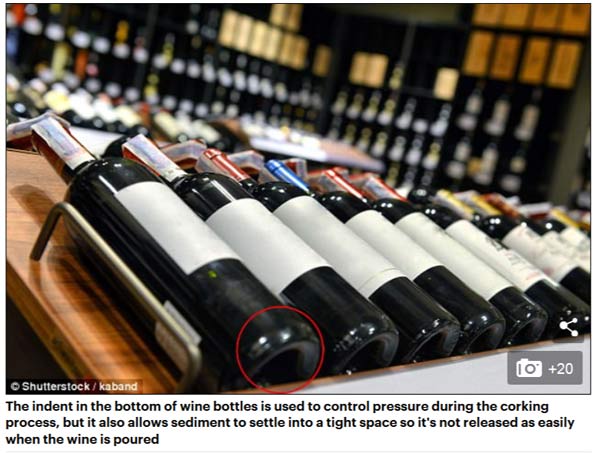 瓶底有凹槽的红酒瓶能更好地承受压力,同时该凹槽还能沉淀葡萄酒的残渣,使得在倒酒的时候,残渣不容易被倒出来。