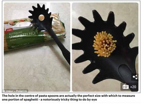意大利面勺子上的孔可以用来量取一人份的意大利面——这单用眼睛可是很难办到。