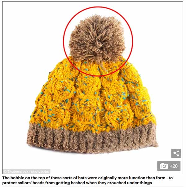 这类帽子顶部的小球原来可是实用大于美观——它可以在水手蹲伏的时候,保护他们的头以免被撞到。