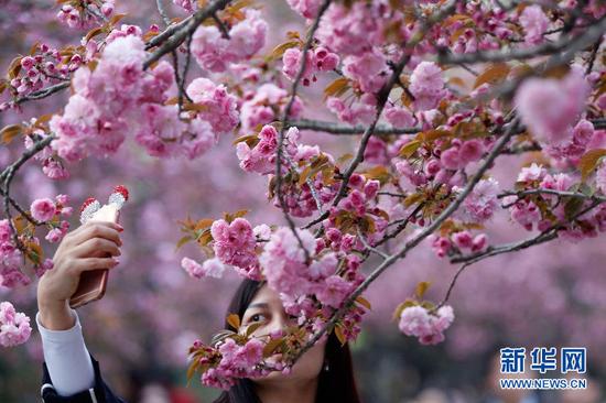 3月27日,在中国科学技术大学(微博)东区的“樱花大道”上,游客在观赏樱花。图片来源:视觉中国