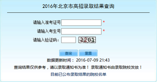 新浪教育讯 2016年北京高考录取结果查询入口开通,北京考生可点击进入。入口