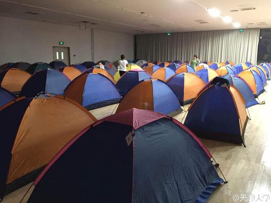 近日,天津大学(分数线,专业设置)迎来开学季,学校为送新生上学的家长们在学校体育馆里提供了爱心帐篷,据了解,这已经是天大连续第四年为新生家长提供帐篷。除了帐篷外,体育馆里还有空调,并开辟了洗漱间,为陪伴新生到来的爸爸妈妈们提供了临时的“小家”。