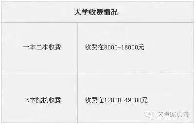 艺考大学收费情况