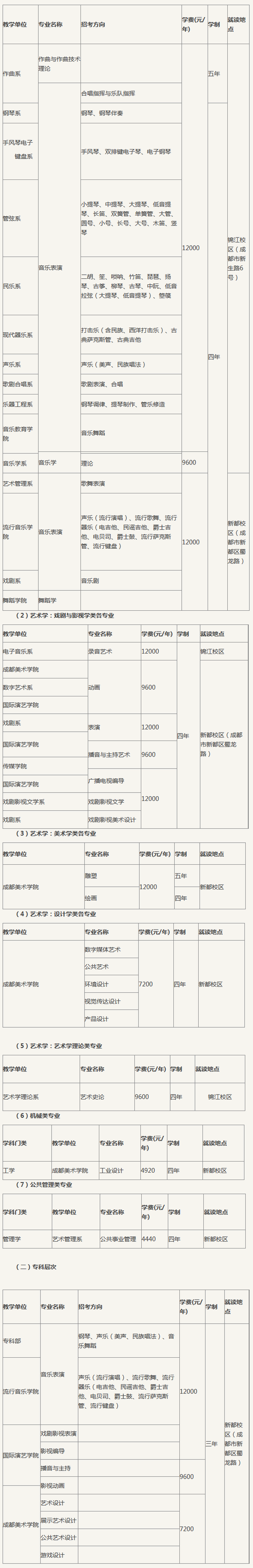 (1)艺术学:音乐与舞蹈学类各专业