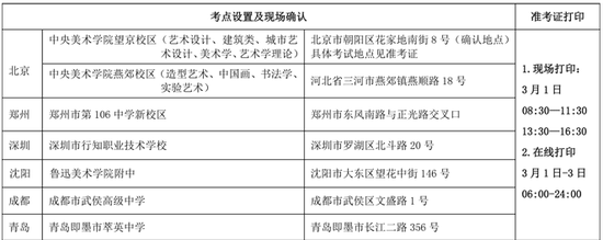 2、北京考点只接受北京、天津、河北、山西、内蒙五省市考生进行报考确认并考试;其它省份考生可在郑州、深圳、沈阳、成都、青岛五个考点中就近任选其一进行报考确认并考试(书法学、实验艺术专业除外)。