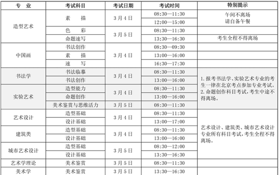 (四)考点要求:书法学、实验艺术专业的考生报考时一律选择北京考点,其他专业参看第四条专业考试中的说明。