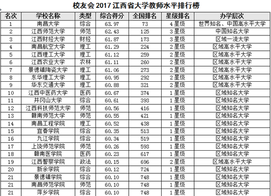 江西省哪所大学的本科生和研究生的教育教学质量、毕业生质量最高?哪些大学人才培养水平、教师水平最高?哪些大学是2017年全国高考优秀考生报考江西省高校的最佳选择?