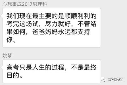 孩子这么问,一般是担心自己考砸了让父母失望。此时,家长应该让孩子设定合理的目标和期望。如今,升学的方式多种多样,并不是考了高分上了好大学未来的路就一帆风顺。希望考生们能把高考看作人生中的一次普通考试,保持平常心,尽力就好!