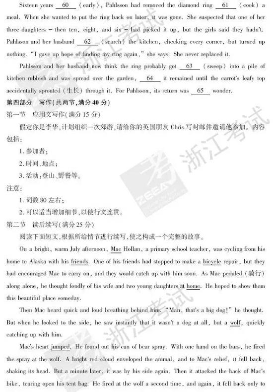 2017年高考英语真题及参考答案(浙江卷)(9)