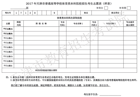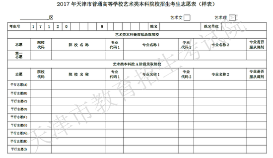 按照天津市规定,2017年高考成绩公布后,符合一定分数范围的考生,可于6月25日至6月29日中午12时,填报本科二批及以上批次院校志愿。现提供2017年高考本科各批次志愿表,供考生参考使用。