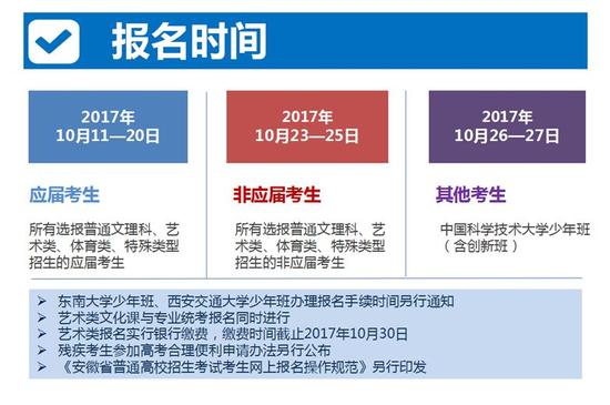 近日,安徽省教育招生考试院公布了2018年普通高校招生考试报名政策解读(图),具体详情如下: