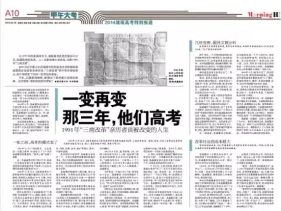 当年10月,国家教委启动“三南改革”,湖南、海南、云南三省将过去高考的文理科分组变为文史、理工、医农和地矿四类,每类只考4门,而这一重大政策的宣布,离次年高考只有不到9个月的时间。无数人的命运因为这一纸文件而改变。直到今天,高考的内容和形式仍在不断变化。“上榜”这件事,对每位考生都充满了变数。