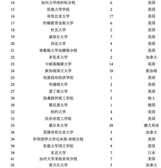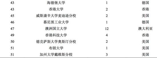注:高校排名依据 2017 英国“泰晤士报高等教育副刊”世界大学排名(Times Higher Education)