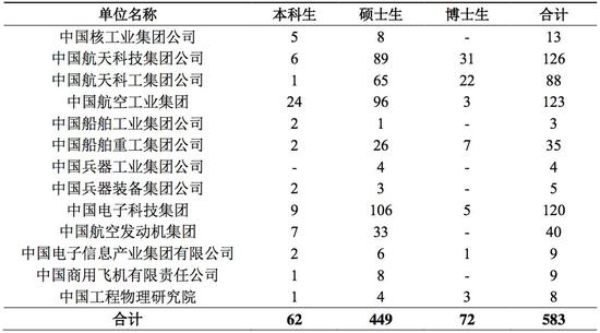 2017 届毕业生到国防科技工业单位(部分)就业情况统计表