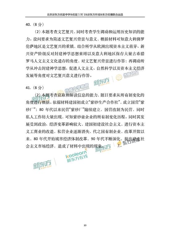 据新东方 2018高考文科综合已结束,北京高考文综参考答案发布。