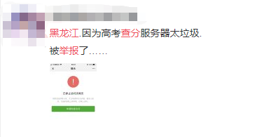 黑龙江考生纷纷在微博疯狂吐槽:高考考场上都没这么紧张!查分心切的考生甚至举报了考试院公众号的查分页,使之被微信屏蔽,谁也查不了。目前仍有很多黑龙江考生尚未查到自己的分数。