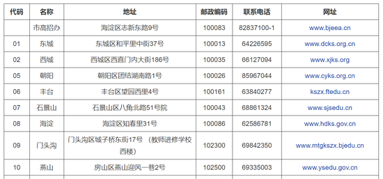 北京市及各区高招办地址联系方式