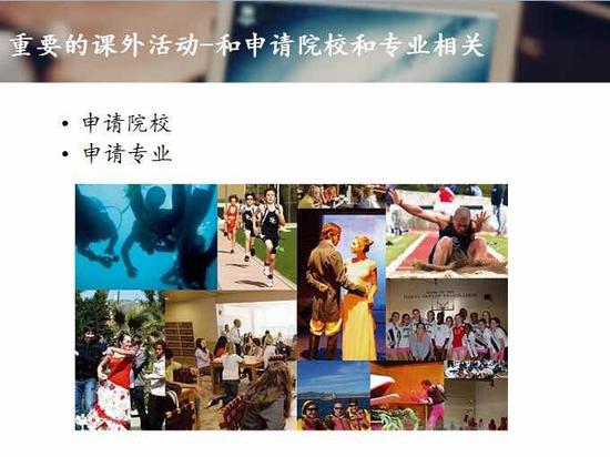 课外活动本身对中国学生来讲,尤其在普通高中,绝大部分的学生,会有两大问题,一个是学业特别紧张,平时都是写作业,即使在国际学校,除了IB之外,甚至像A-level或者普通的中美班,课外活动很少,学业压力很大,甚至体育、艺术等方面,为了学业,进入高中就要放弃。那课外活动到底怎么来规划。第一是学业的问题。第二是有些优秀的学生活动是很多,今天参加模联,明天参加辩论,后天参加交流,大后天又去参加义工,规划没有主线,没有深度,都是浅尝辄止。从申请的角度来讲,这种浅尝辄止是有很大问题的。