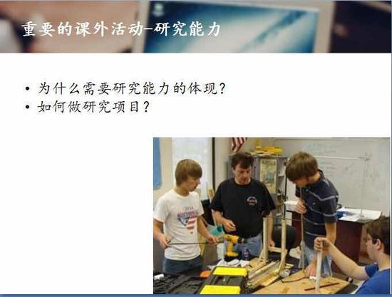 什么是研究能力呢?就是学生选一个他特别感兴趣的话题,在导师的指导下,对这个话题进行深入的研究,能够有一定的成果,这个时候按照社会责任感的活动,体现领导力的活动,体现研究能力的活动,这个逻辑来做规划。