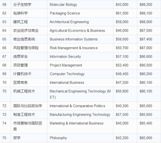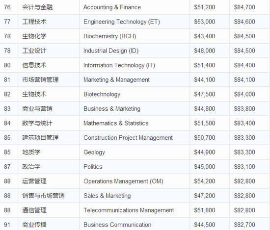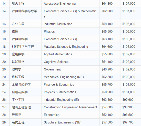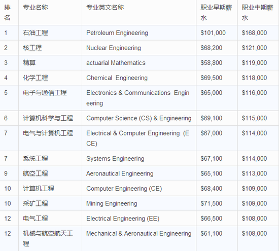本排名来源于美国专业薪水调查网站PayScale,排名将每个专业的职业早期薪水和职业中期薪水进行了对比。另外,本排名对于一些相近专业的薪水差异分别进行了统计,在纠结专业或专业方向的小伙伴们,可以看看这份排名~
