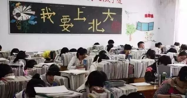 (典型的中国高考班,案头如山)1、走!去美国念书