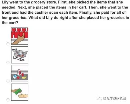 5. 丽丽去逛超市。首先,她挑选自己想要的东西;然后,把它们放进购物车里;接着,去收银处让售货员扫每件东西。最后,付钱离开。问题来了,丽丽在把东西放进购物车之后,紧接着做哪件事?