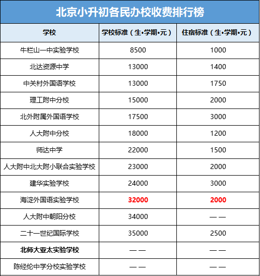 1.数据均来源于海淀区招生考试中心及学校官网。海外收费以2018年为准。
