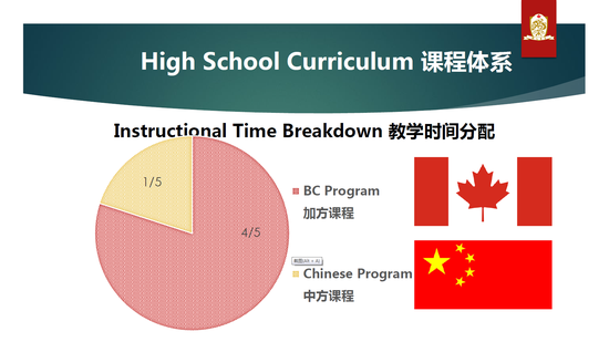 此外,学校还配备了从小学到高中的加方BC课程,以保证学生未来拥有独特的升学优势。据“2015国际学生能力评估计划测试结果”显示:BC课程体系的成绩超过了72个国家,阅读排名第一,科学排名第二,数学排名第六。