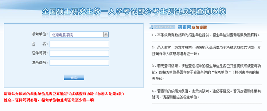 新浪教育(微博)讯 北京电影学院2016年硕士研究生招生考试成绩查询入口开通,考生可点击查询。