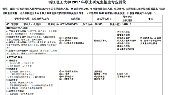 新浪教育讯 浙江理工大学2017年硕士研究生招生专业目录目前已公布,详情如下: