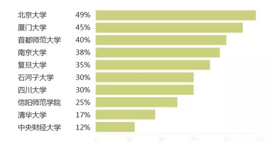 清华以32%的自习室上座率险胜北大28%。北大的自习环境看上去更浪漫一些。