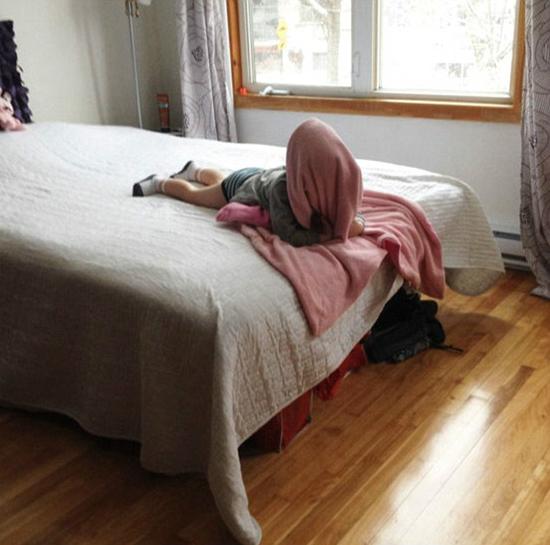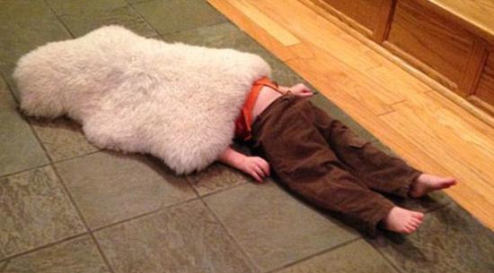 有些小孩决定直接躲藏在众人视线下,只用一条羊皮地毯,要么用一条色泽鲜亮的毯子,甚至用透明的储藏箱来掩人耳目。还有的小孩很快就被自己的影子暴露了,要么就是他们没有利用环境把自己隐蔽起来。