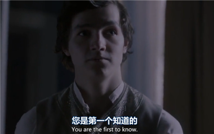 在剧中,跑腿的小哥就告诉女王的家庭教师,她是第一个知道这个消息的人。The first to 。。。/The last意思是“第一个做某事的人”。