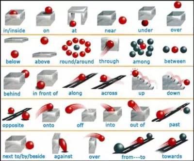 在学习英语中,关于介词的使用一直是孩子们的软肋,只有掌握了正确的方法才能运用自如。那么,英语中各种介词到底该怎么使用呢?相信下面这九张形象的图片,一定会让孩子很快掌握这些知识点。