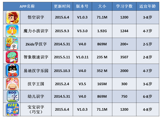 如何教宝宝识字是许多新手爸妈颇感头疼的问题。据不完全统计,目前市场上已有接近数百款儿童识字类App。根据网友的票选,本次测评共选出“悟空识字”、“魔力小孩识字”、“2kids学汉字”、“智象极速识字”、“易迪汉字乐园”、“汉字王国”、“幼儿识字”、“宝宝识字”(巧宝)共8款儿童识字APP进行了全方位对比。最终“悟空识字”凭活泼多变的学习方式及精美的界面设计,成为最值得推荐的识字类APP。“宝宝识字”则因界面底部的动态广告栏及无法设置最长学习时间等瑕疵,而拥有最大的提升空间。此外值得一提的是,虽然“防沉迷”已经成为刚需,但仍有超过六成的识字类APP未面向家长提供有效的干预功能。识字类APP市场良莠不齐的发展现状可由此略见一斑。