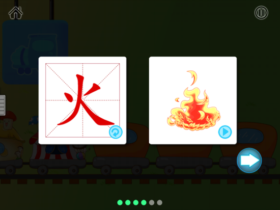 魔力小孩识字:采用语境扩展识字法,通过图片和词组对汉字进行解释,结合魔力小孩马戏团冒险的故事,让小朋友随其一边周游世界一边学习基本汉字。并且本作还有学习进度表、柱形图和KPI数据表来让家长对孩子的学习进度、成绩进行直观的了解。但在进行汉字演示时,儿童无法主动控制视频演示速度,且无法退出,不利于儿童根据自己的需要及时进行记忆和温习。