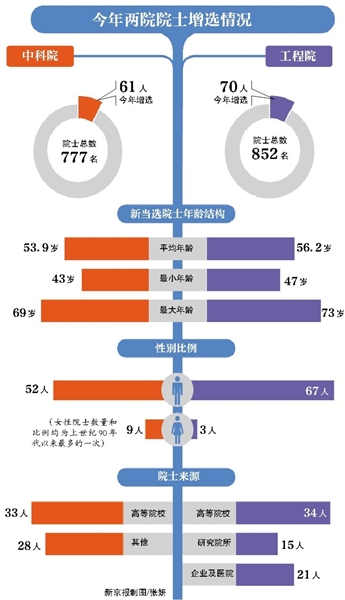 此次两院院士增选为院士制度改革后的首次“试水”,本次增选后,中科院院士总数达到777名,中国工程院院士总数达到852人。